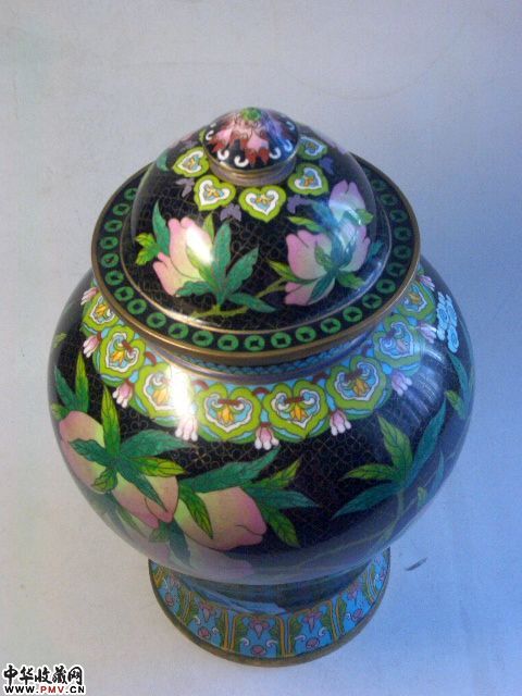 清 铜胎掐丝珐琅福寿纹将军罐