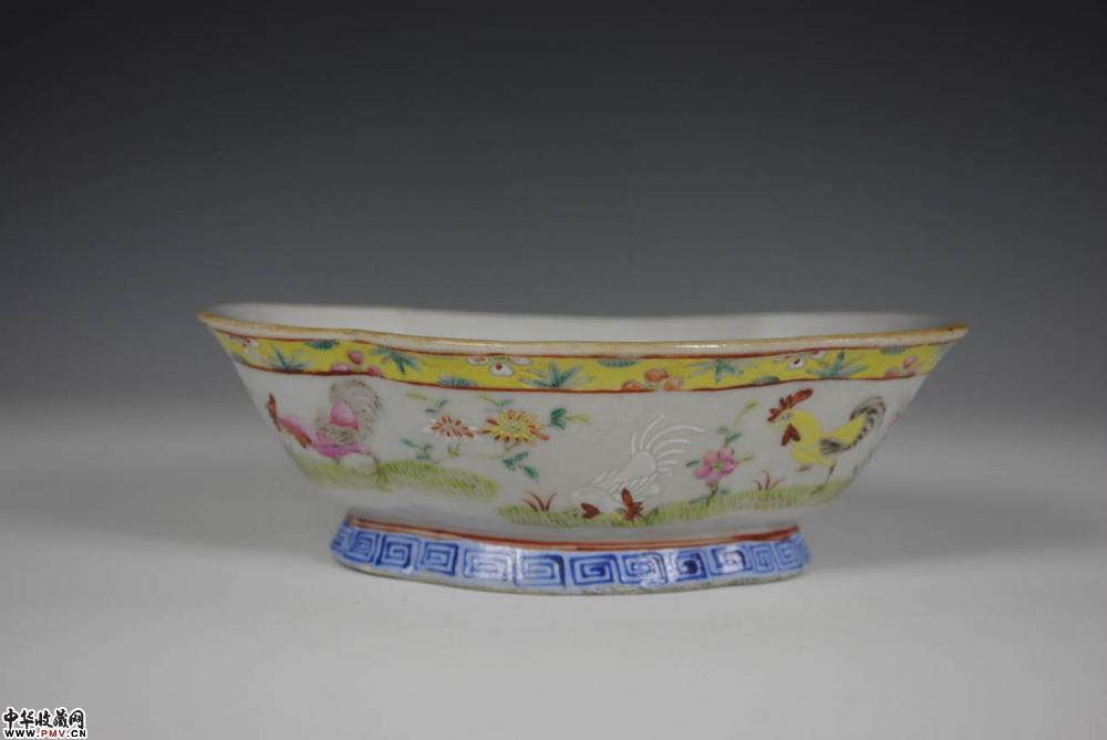 清末景德镇窑粉彩官上加官海棠盘