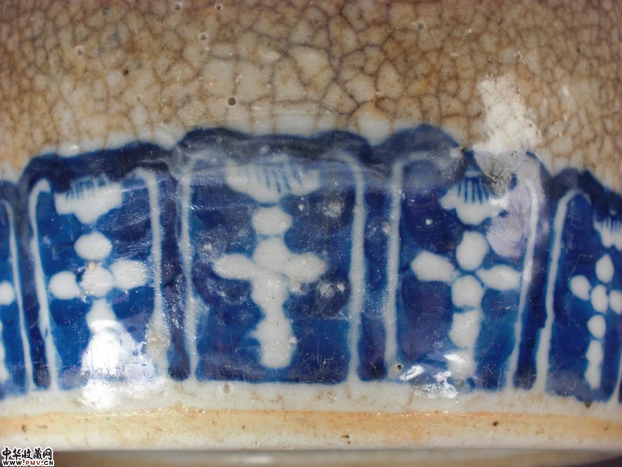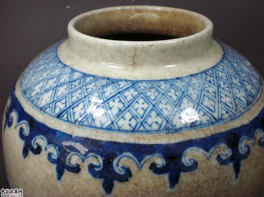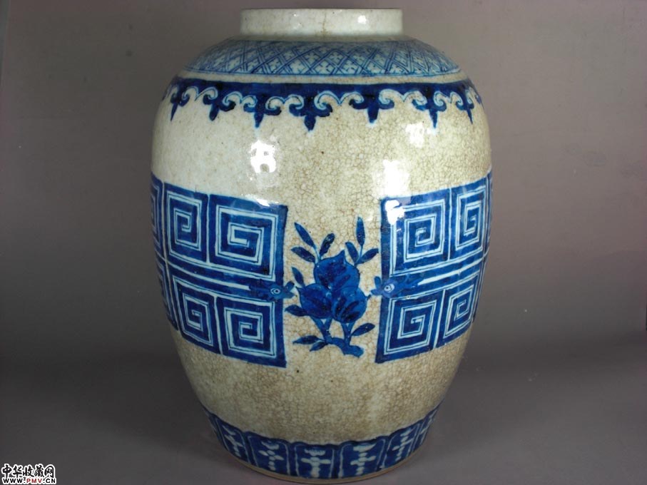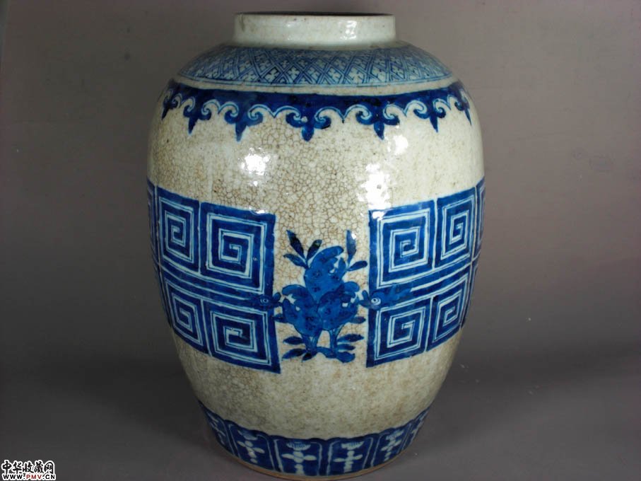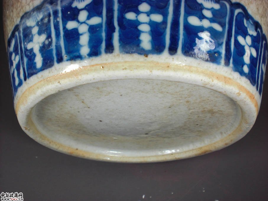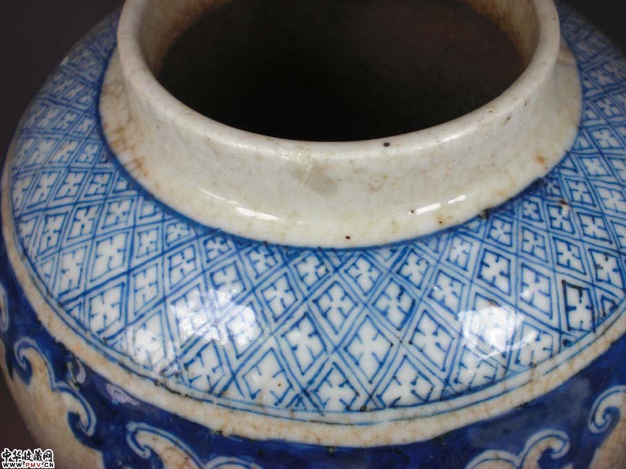 高29厘米,口沿有一短冲线和一磕裂,底有一过墙呈90度冲线,身个别地方有小气泡爆釉呈小坑装,9和10图反映清楚,此尊体型硕大,气势磅礴,短颈下一周绘锦地纹,接着留白后肩一周绘如意头纹,接着留白后主题绘画回龙兽面纹间隔三多果实纹,留白后下部接着绘画一周莲瓣纹,有疏有密,错落有致,又以哥地开片相衬托,更显得豪华尊贵!实为典型的传世作品,类似这样的东西已是越来越难找了!