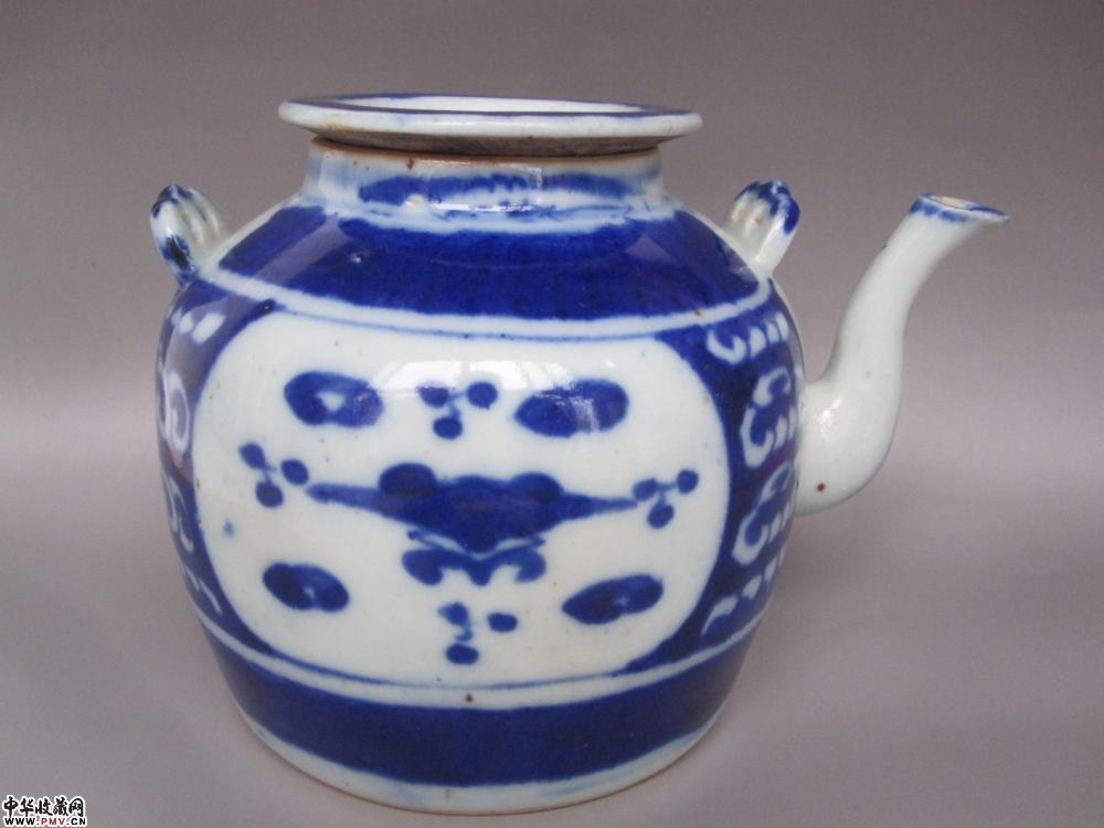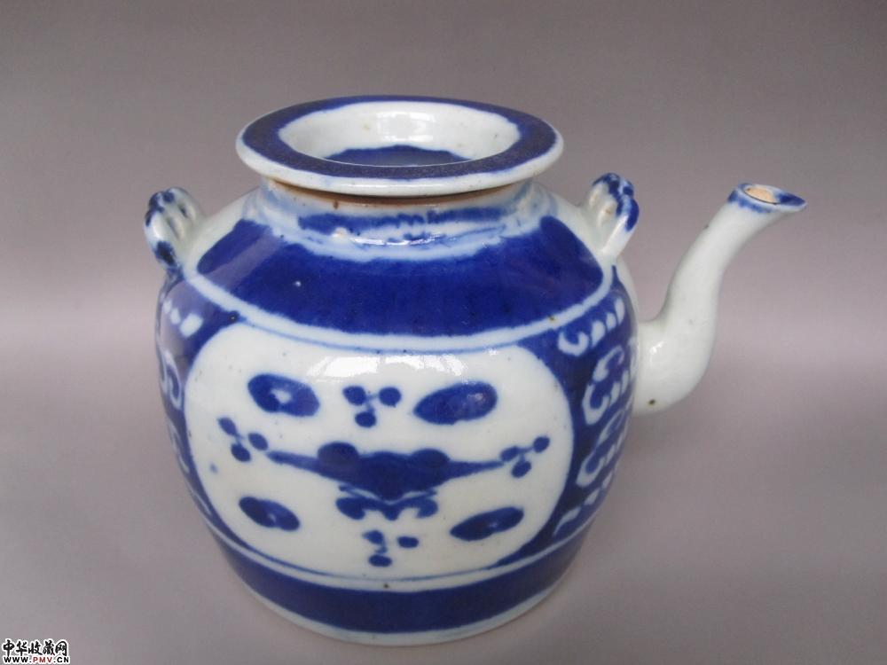 清末景德镇窑青花开窗大号茶壶《已售》