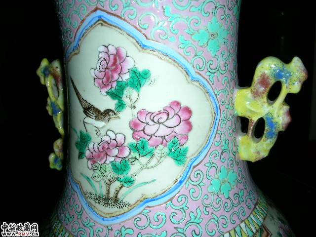 同治粉彩开光花鸟瓶一对