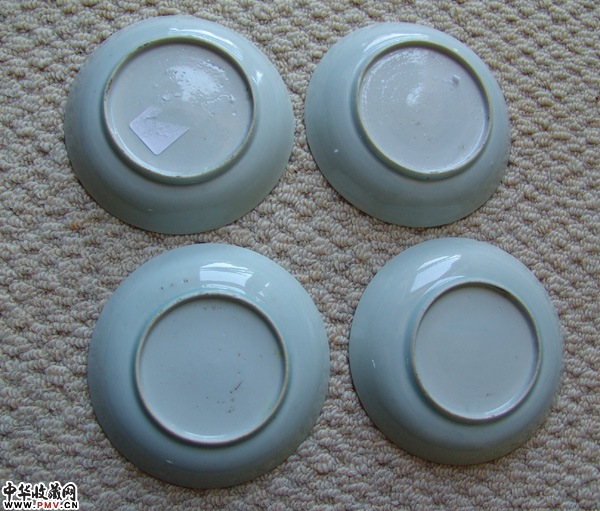 碟子直径曰13厘米。四只碟子全部完整,一只杯子完整,两只杯子细冲。