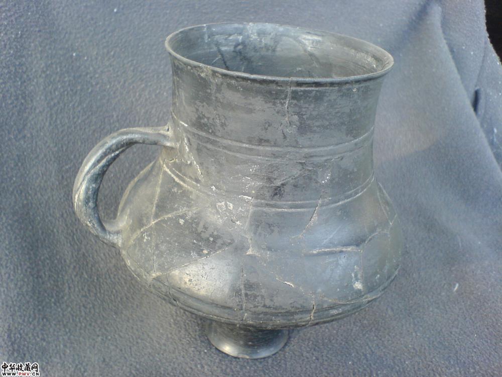 表面磨光,器壁一毫米,典型的龙山文化黑蛋壳陶,器型独特,优美,非常罕见!