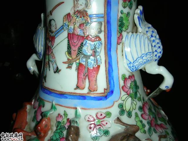 同治粉彩人物鸟耳瓶
