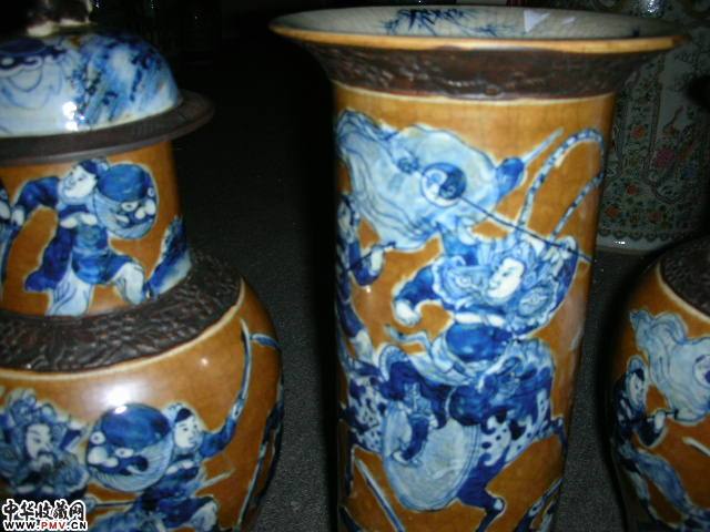 酱地青花人物五件套