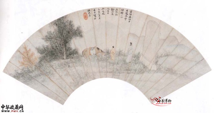 清张风 读碑图扇页