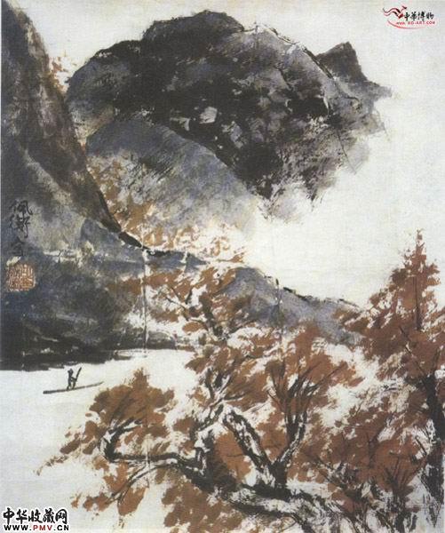 胡佩衡 丁卯(1957年)作 仿麓台山水 扇面 设色纸本