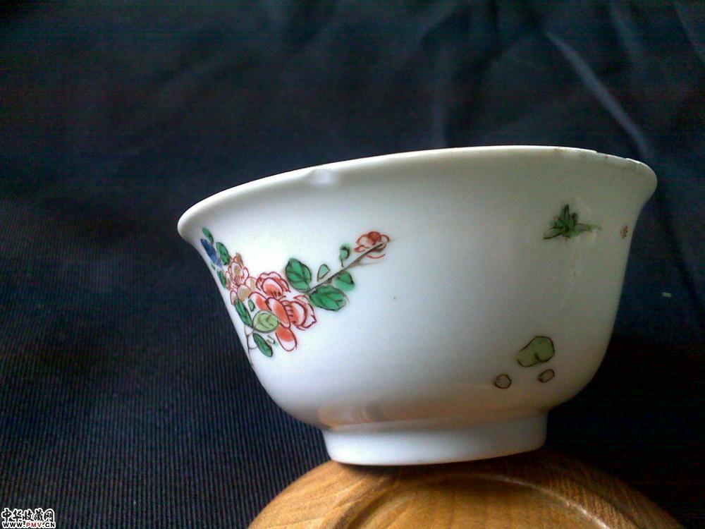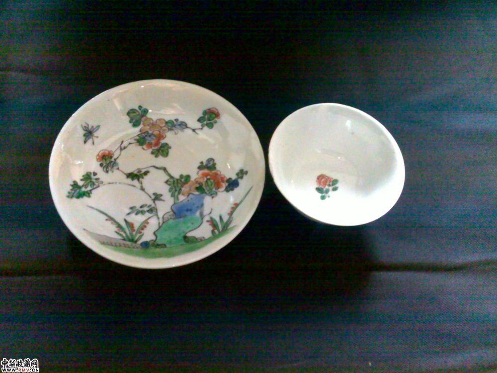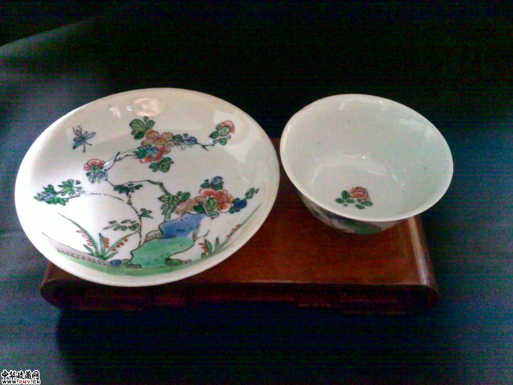 杯口径7.2CM,盘口径11CM.杯沿有一小磕和一处剥釉(见图),盘有一窑裂(如图).正如行内所说,没康熙五彩瓷不算藏家.此套杯碟正中以洞石花卉昆虫为主题,绘比较精道,路份高,底有款,非常值得把玩的细路货.可藏可玩!