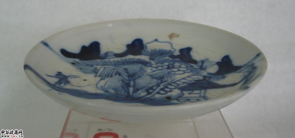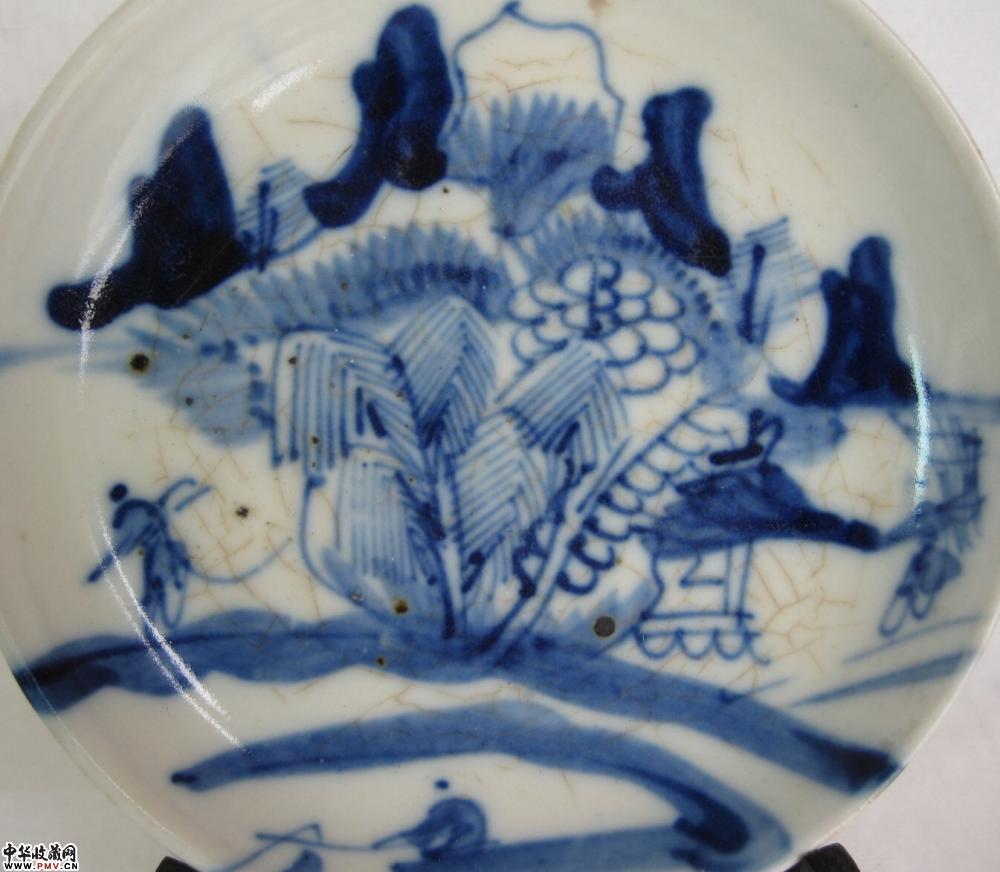 清光绪山水人物焦叶纹青花盘,釉色莹润,画工洒脱,青花发色纯正,全品相,底足周围是窑痕,不是什么问题,口径15.5公分.