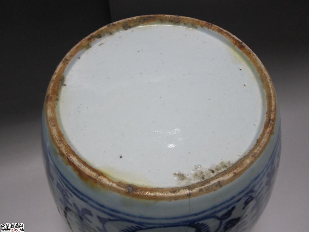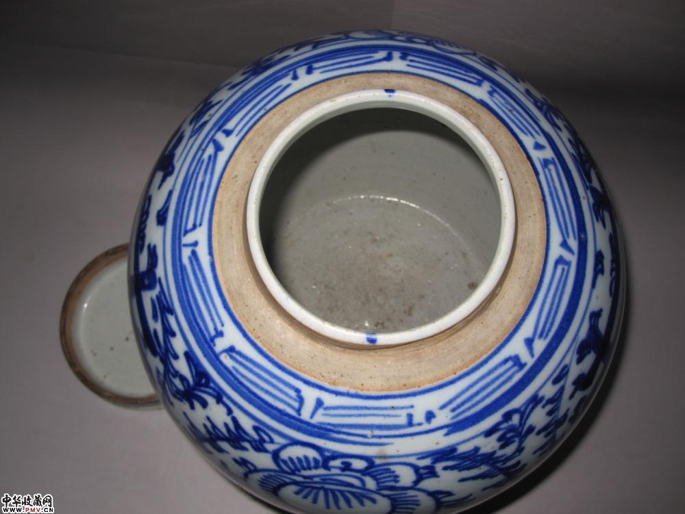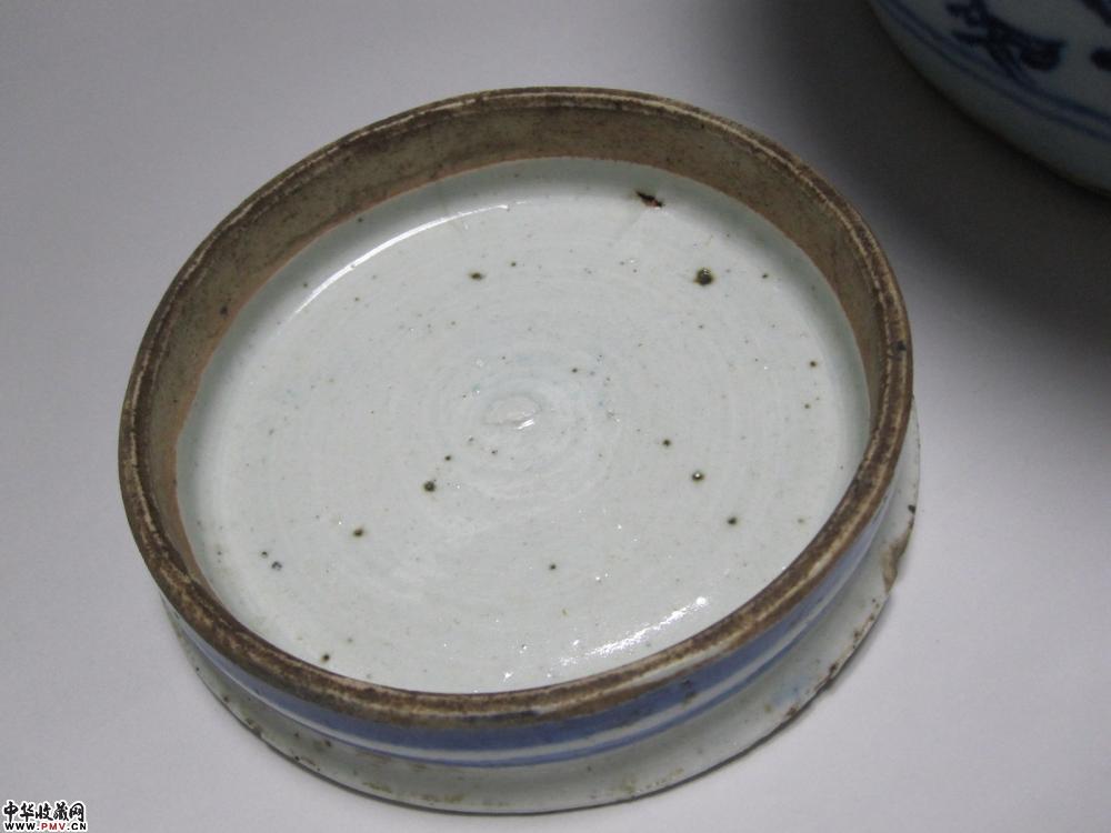 尺寸、高:27.8厘米,罐盖口径:12.7厘米,足径:18.8厘米。品相:近足处2厘米左右紧纹,不透内《图六》。罐盖一小紧纹,一小磕皮《图七》。