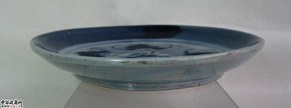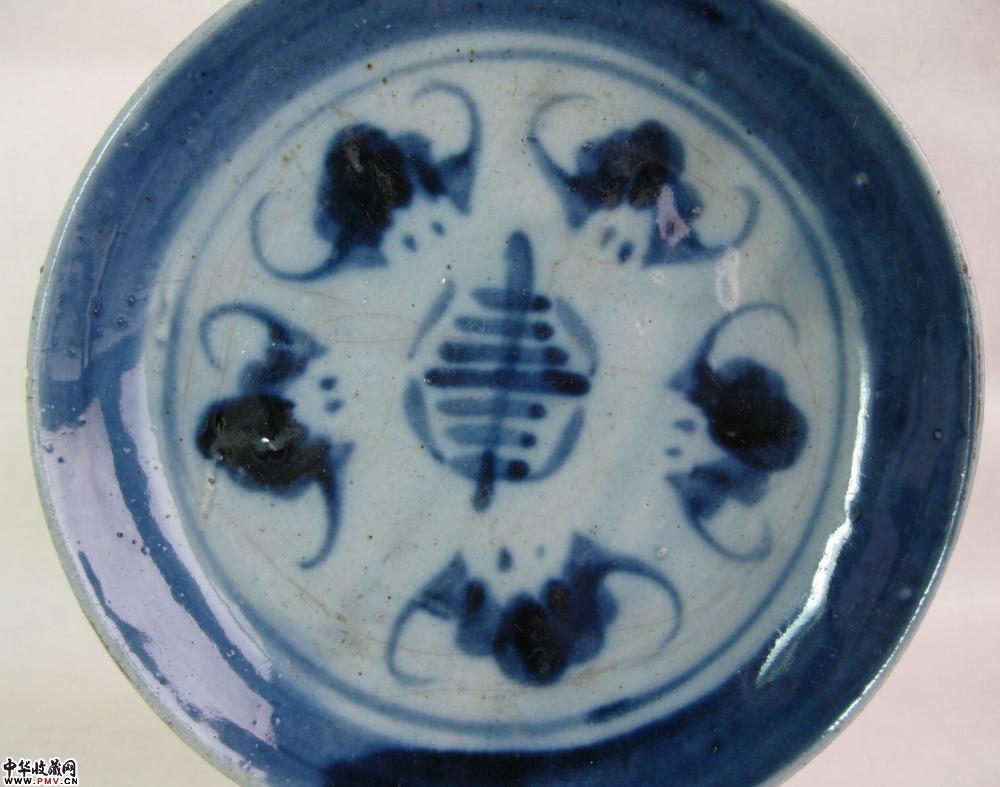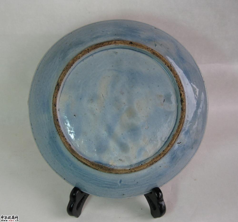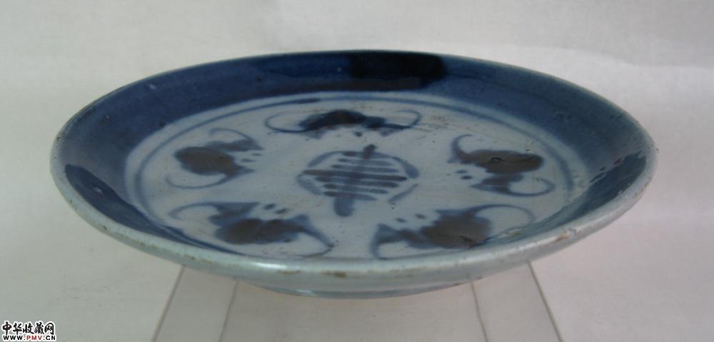 清代青花五福捧寿盘,釉色莹润,画工洒脱,全品相,大开门,口径17.5公分.