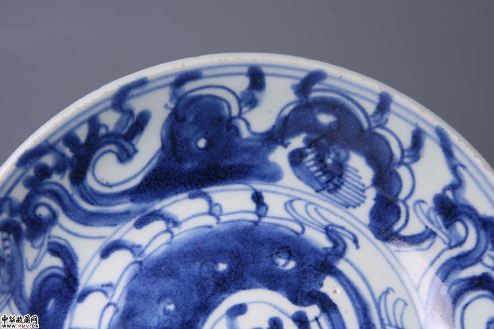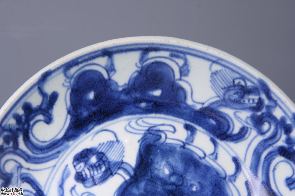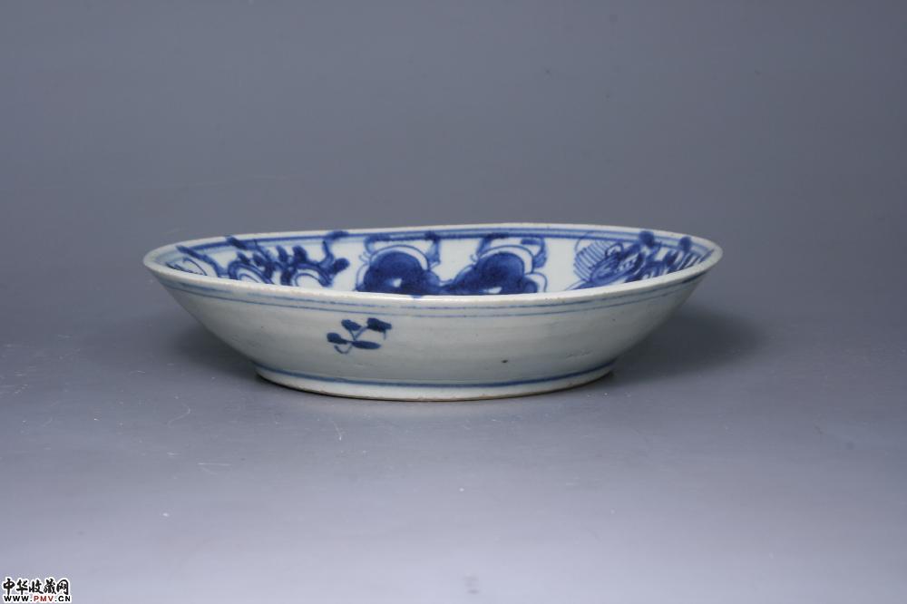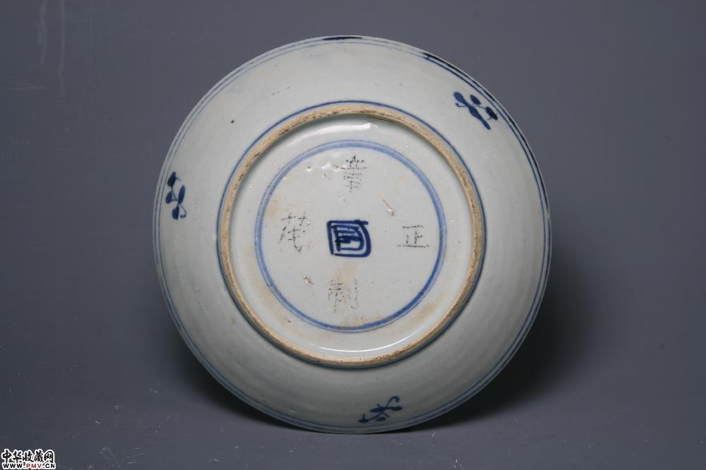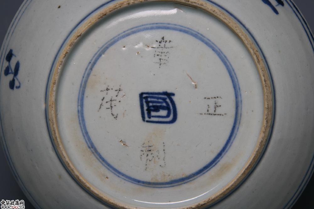 高4.2cm,口径19cm,底径12cm,微失圆,口沿小爆釉,底足刻字。