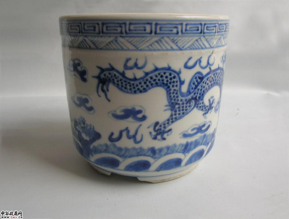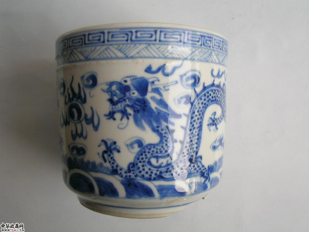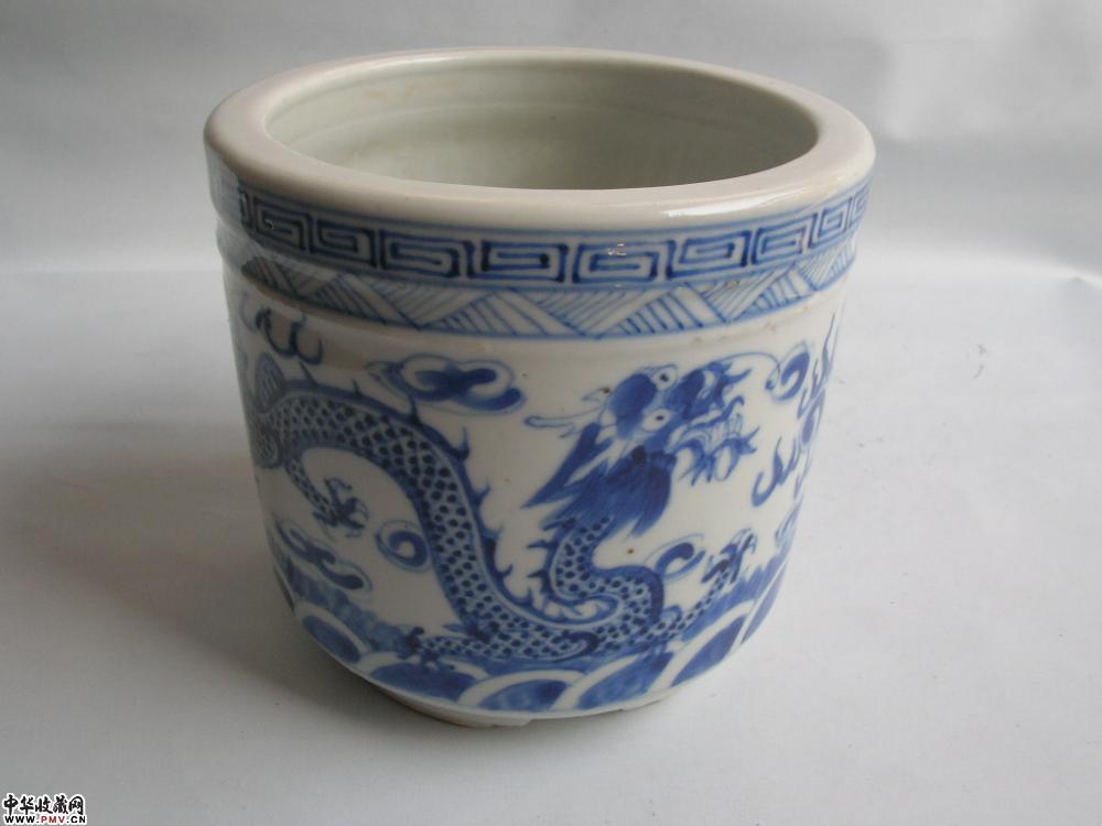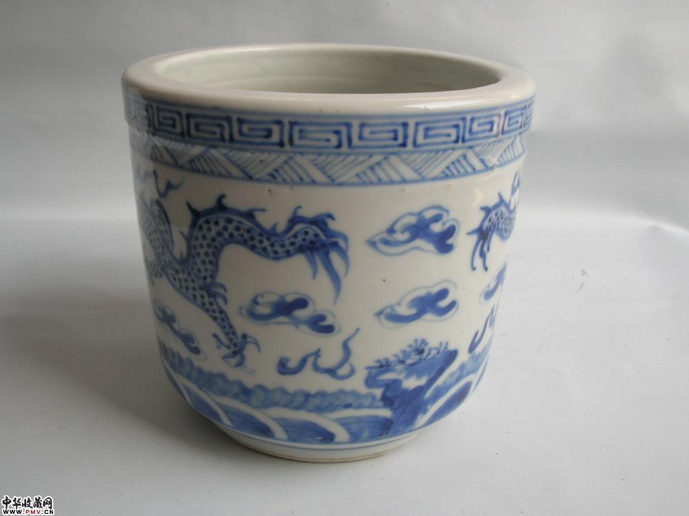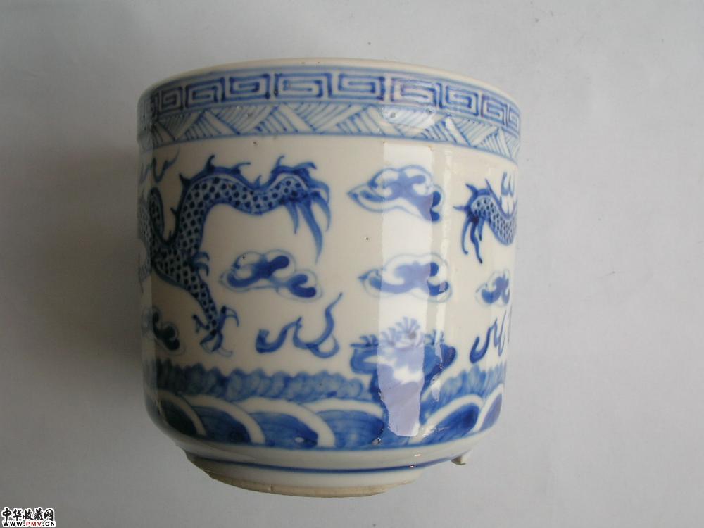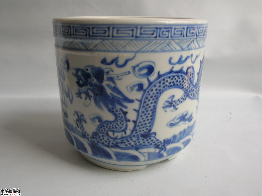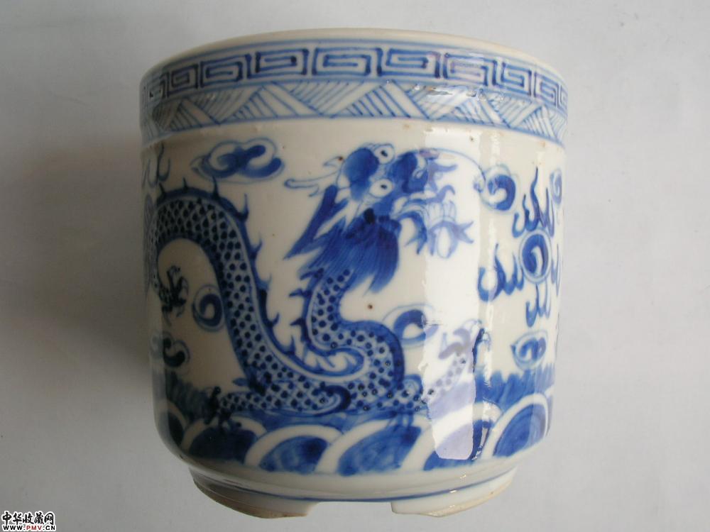 清光绪景德镇窑青花二龙戏珠纹筒式炉(已转)