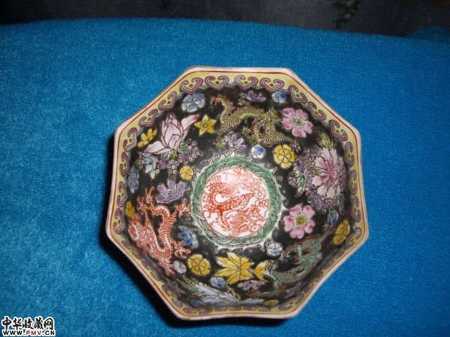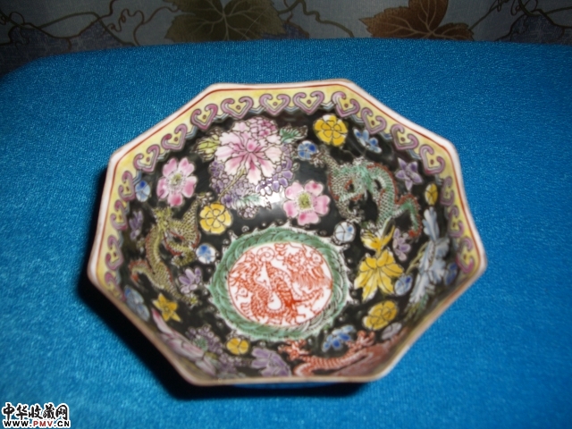 祝世界博物馆日展-清乾隆洋彩龙穿花脱胎瓷八方碗