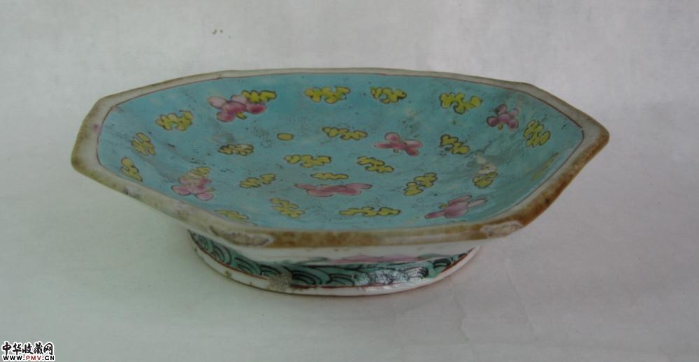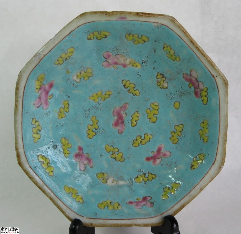 清同治八角形粉彩碟