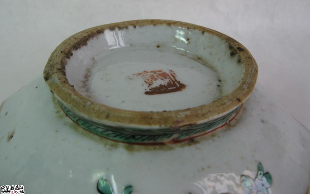 清同治八角形粉彩碟,釉色莹润,画工精细,老气十足,边角处有些剥釉,老器难免,口径16.5公分.