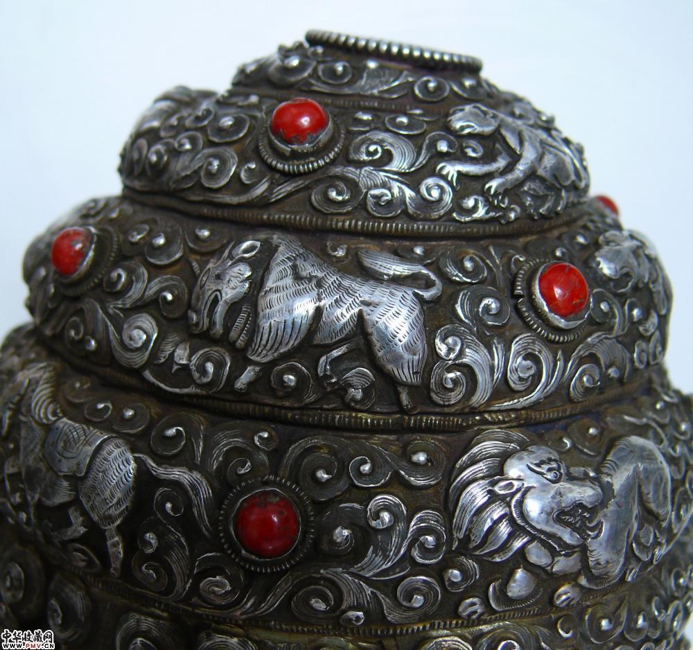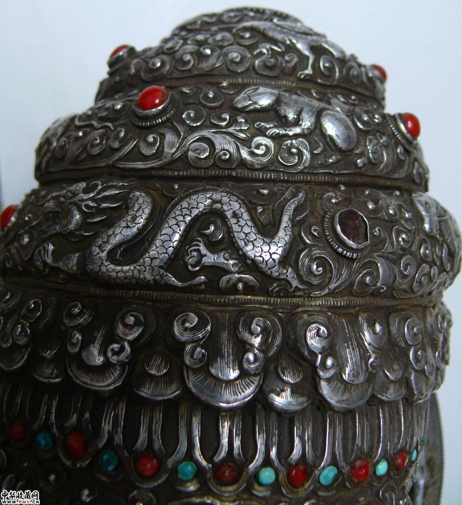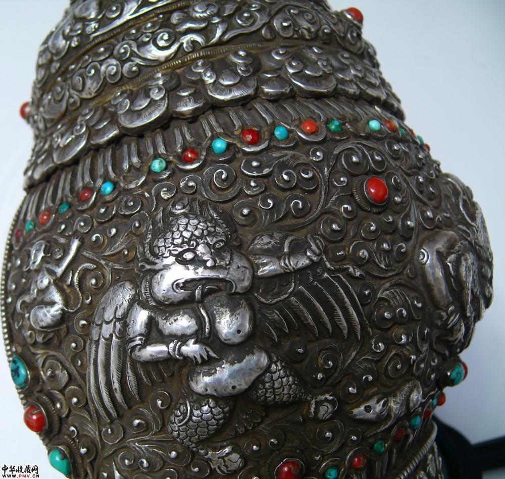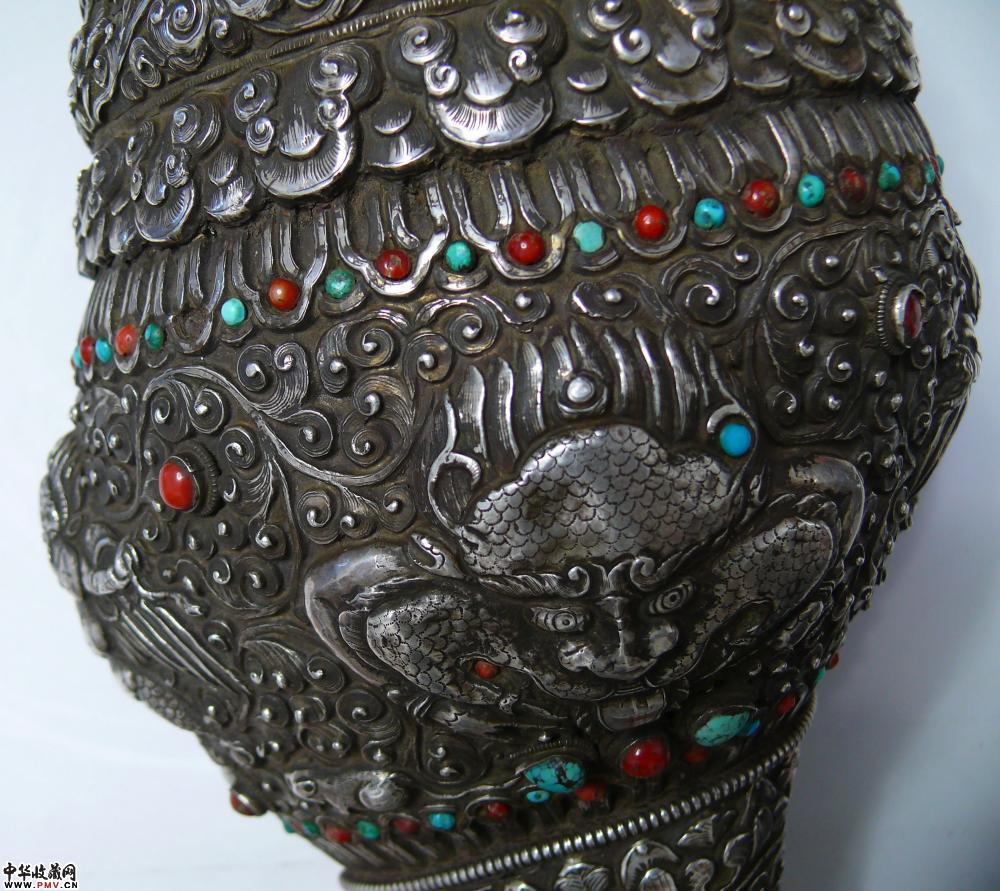 清代全包银满工簪花镶嵌红珊瑚绿松石大法螺,为藏传佛教之稀世至宝,有逢凶化吉,消灾纳福之功效,实在是不可错过。