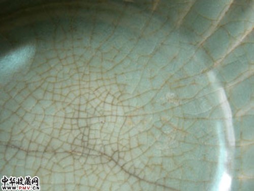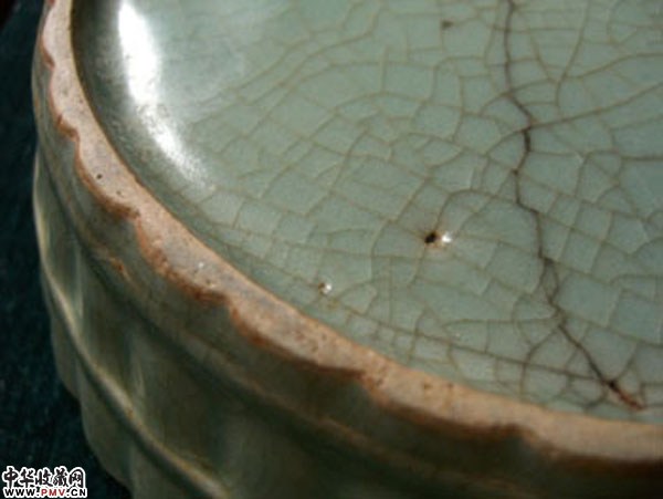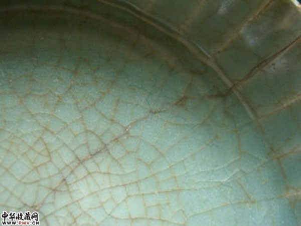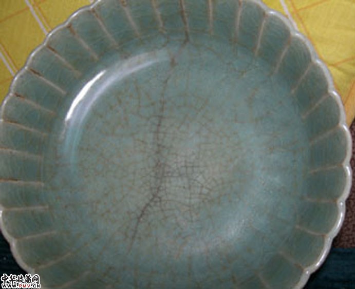 尺寸:口径19CM 高5.8CM 此洗器型端庄典雅,釉水滋润青色如玉是一件难得一见的南宋龙泉窑蔗段洗,美中不足的是底部有冲线(见图)