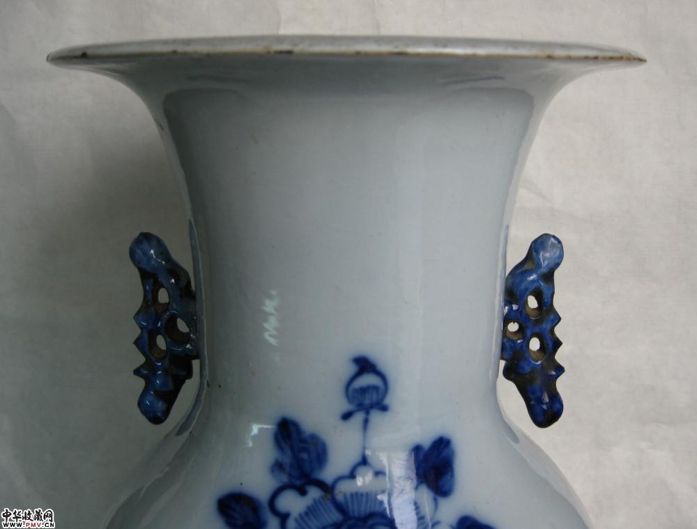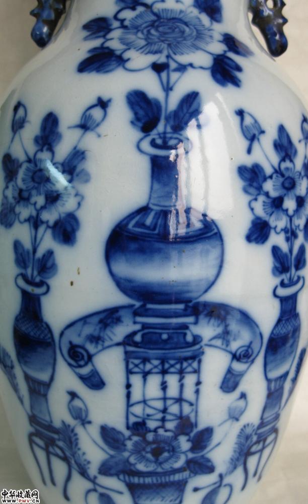 清光绪全品相博古纹青花瓶,釉色莹润,画工洒脱,青花发色纯正,器形规整,全品相,高43公分.