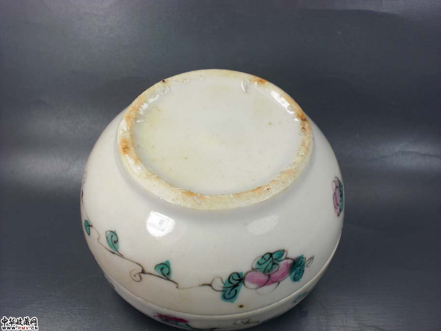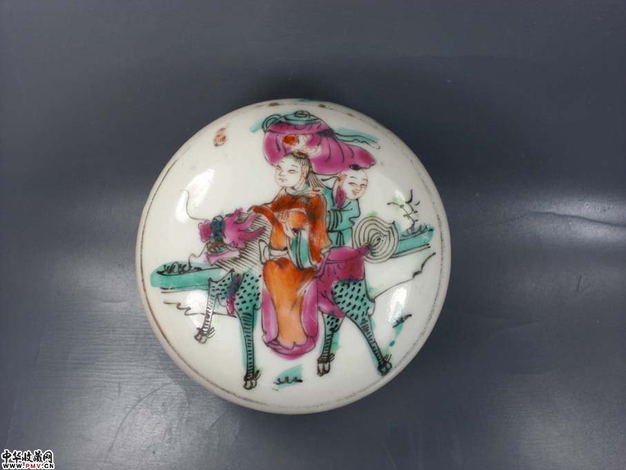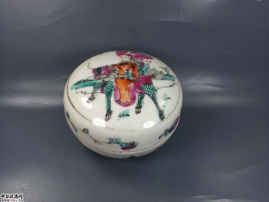 高5厘米,口径8厘米,盖子内沿一小磕皮,图片反映清楚,主题绘以著名典故“麒麟送子”,周围以花卉衬托,寓意吉祥,非常漂亮!
