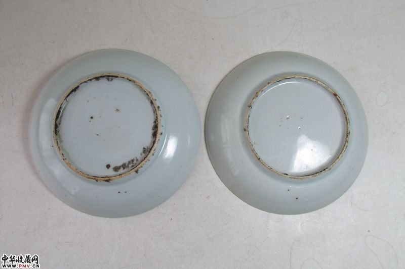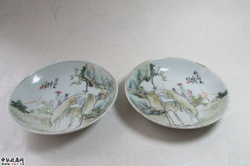 清同治 浅绛彩人物纹碟一对