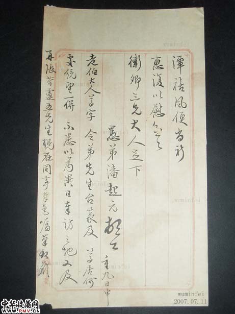 潘起元一通四页。