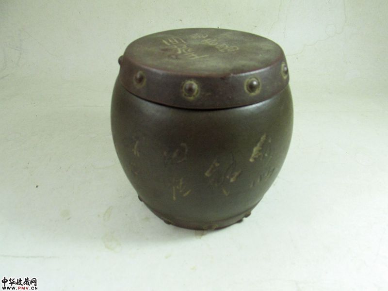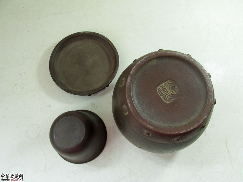 民国 紫砂鼓丁形温茶/酒盖罐(连杯)