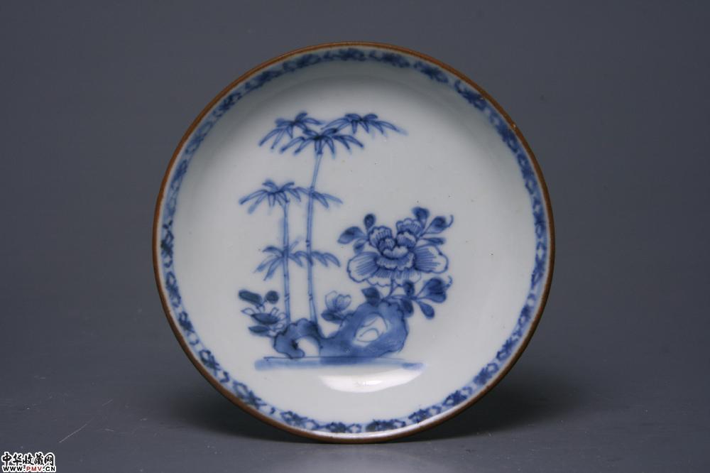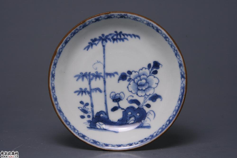 清康熙景德镇窑青花竹石牡丹纹碟(2只)