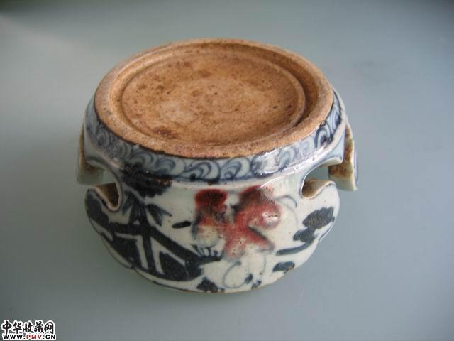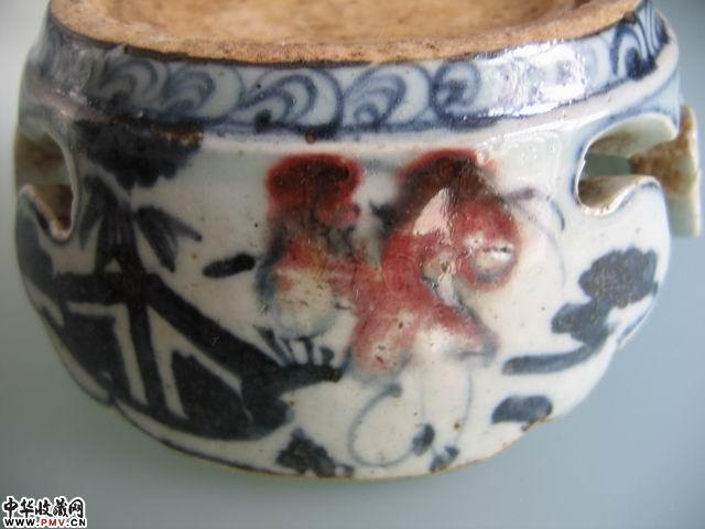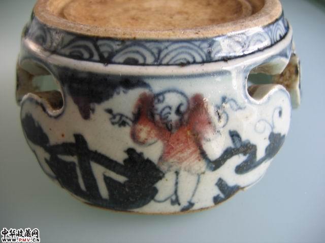 明 青花釉里红婴戏纹瓷砚