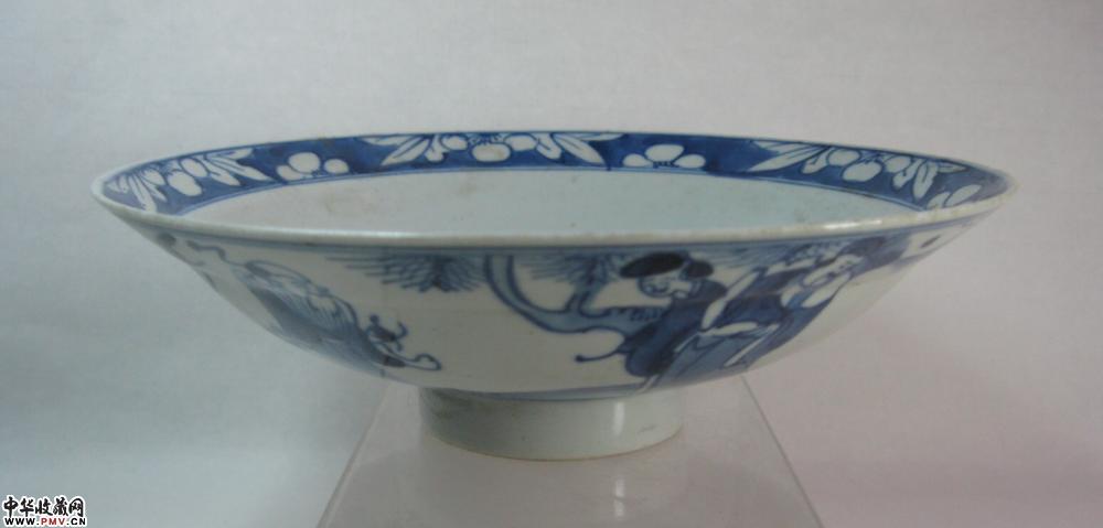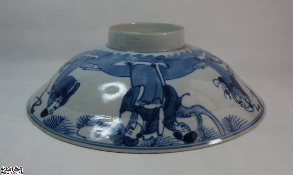 清光绪青花三星人物碗一只,釉色莹润,青花发色纯正,画工洒脱,盘底刻一字,碗沿背侧一小爆,末图可见,不是什么大问题,口径19.8公分.