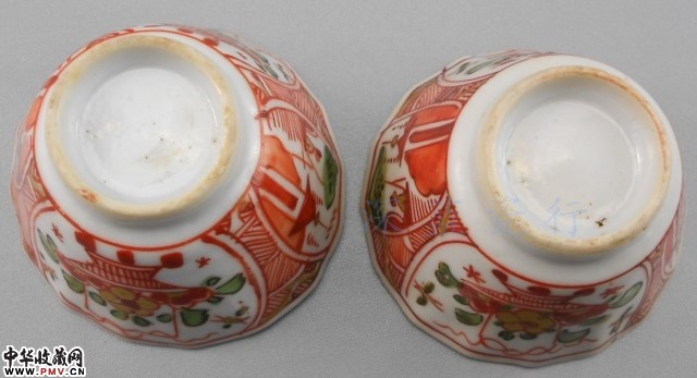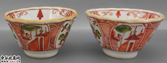 清乾隆矾红风景茶碗一对(2只)。口径5.5厘米