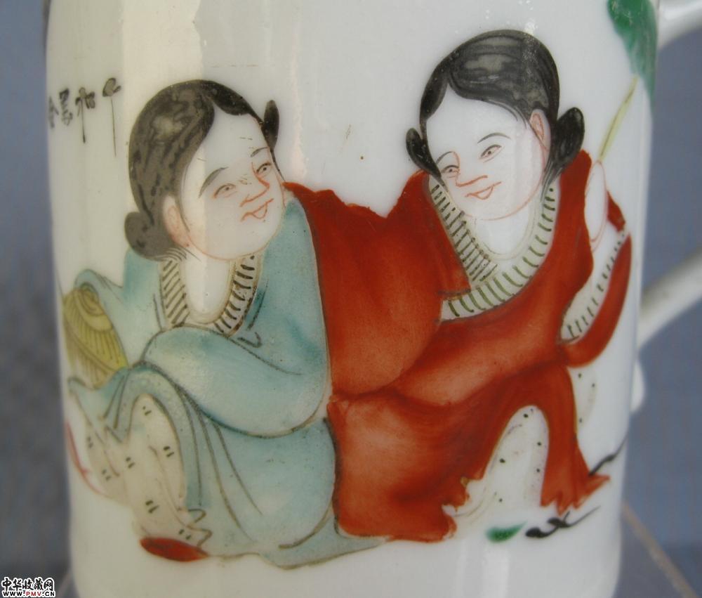 晚清粉彩和合二仙执杯一只,釉色莹润,胎质细白,画工精细,口沿有些小爆,不是什么大问题,高9.8公分,口径8.7公分.