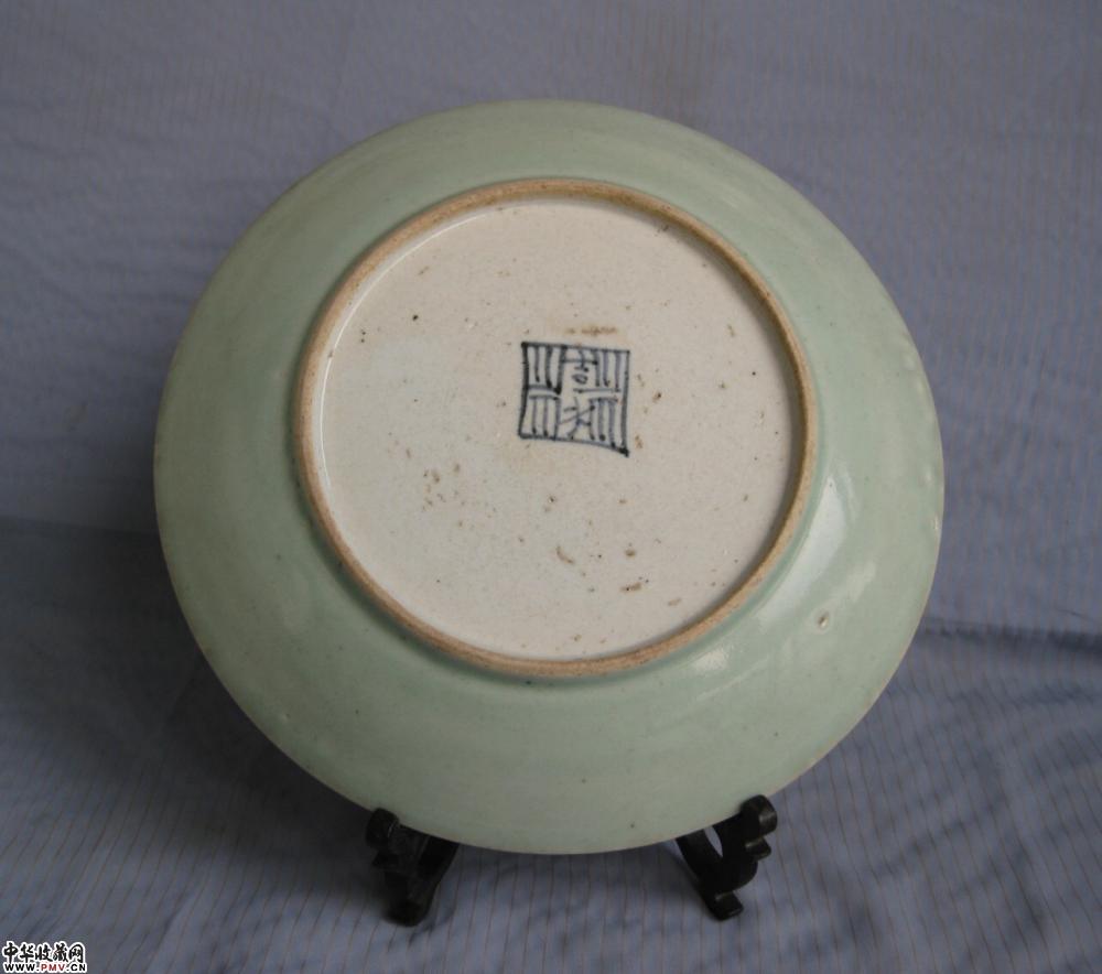 清中期23公分豆青釉大盘一只