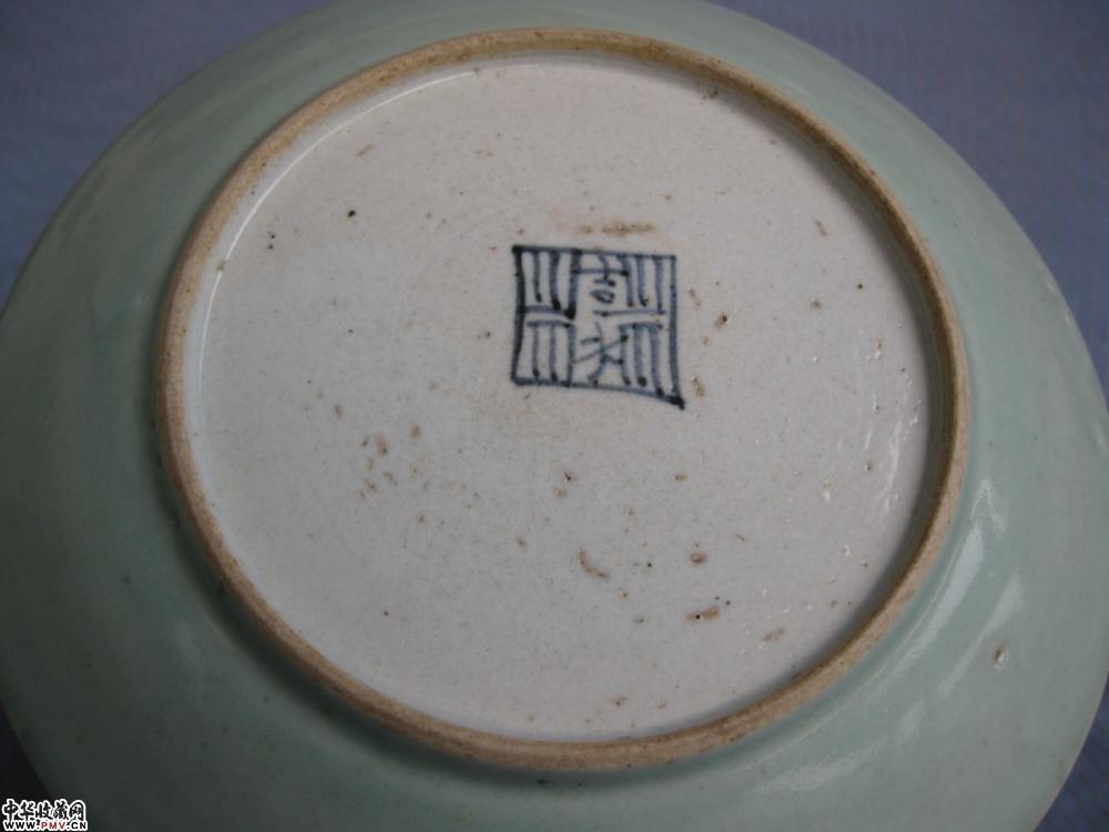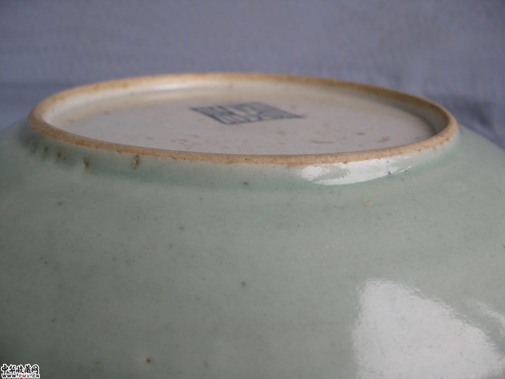 清中期23公分豆青釉大盘一只,釉色莹润,胎质细腻,盘正面有些窑性缩釉点,口沿有磨釉,图中可见,其它没毛病,便宜出了,口径23.2公分.