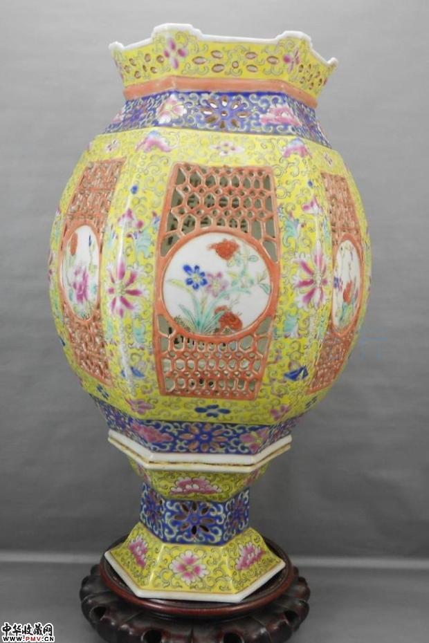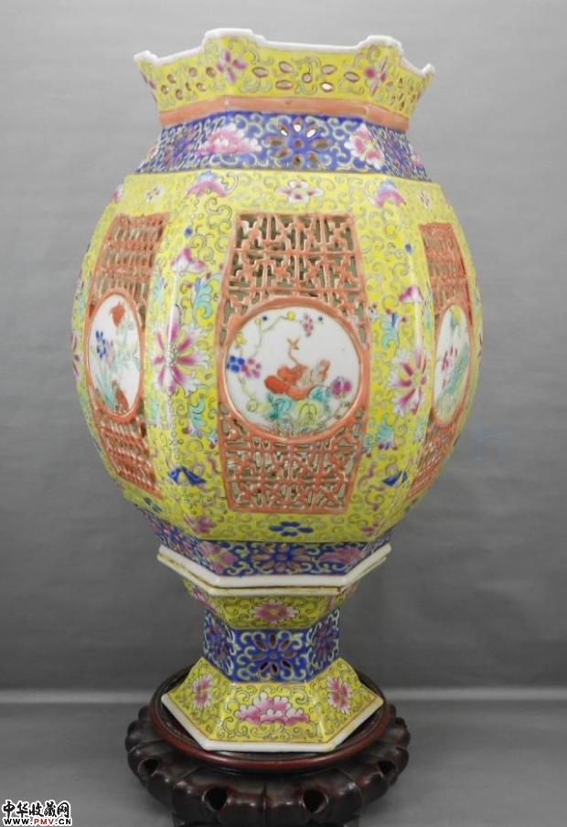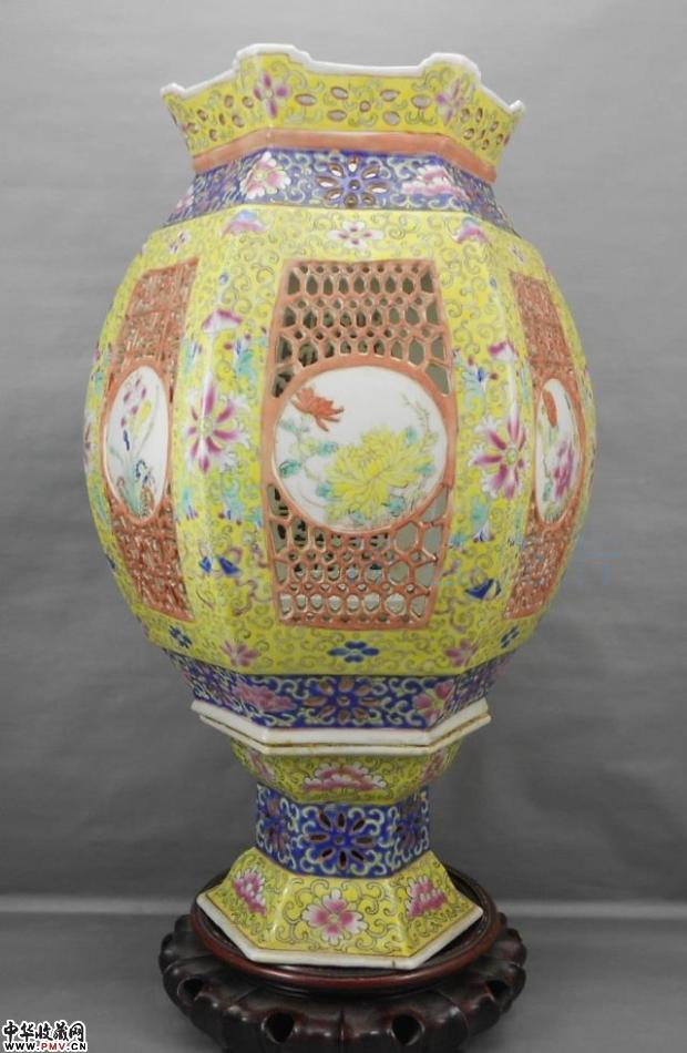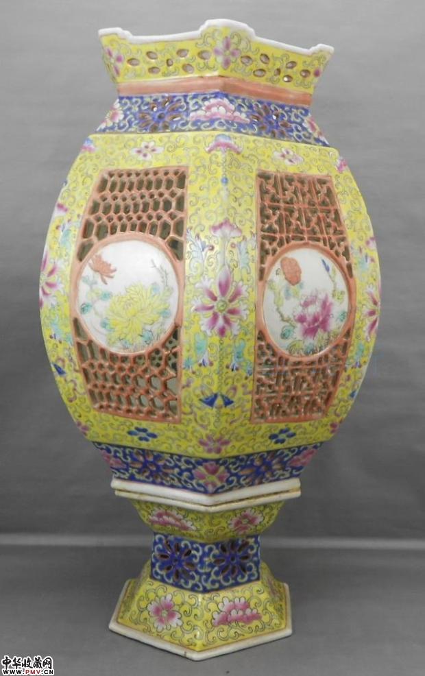 清代黄地粉彩镂空大宫灯