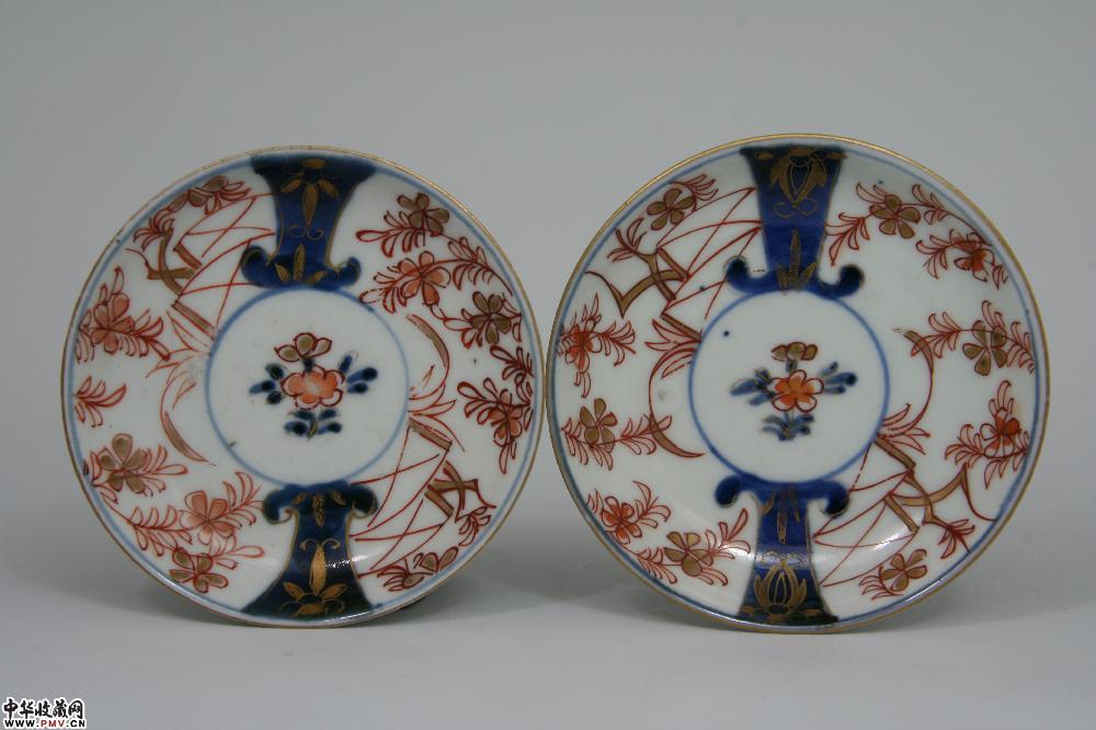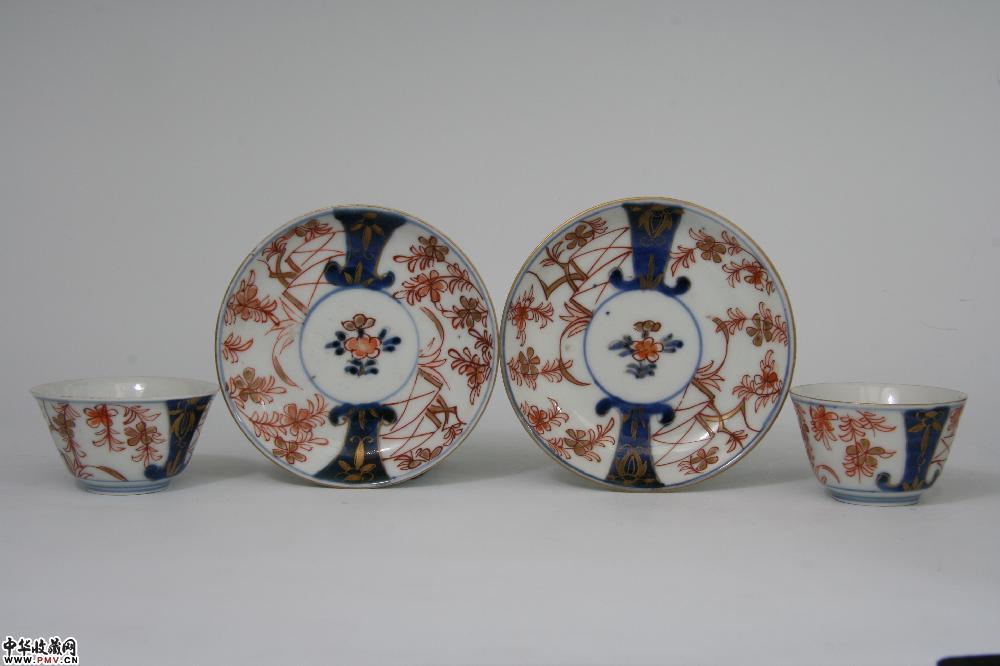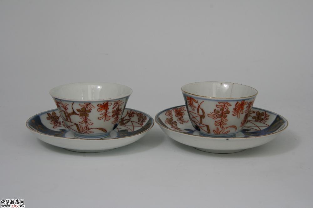 清乾隆景德镇窑红彩描金花卉纹杯碟(2套)